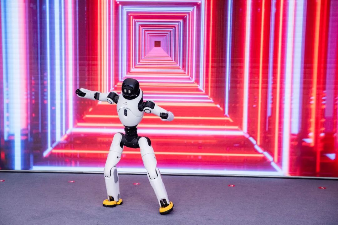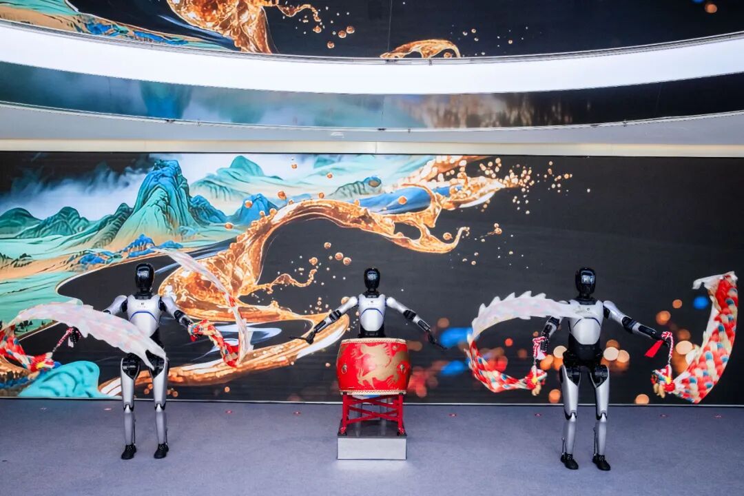 当天的活动在别开生面的机器人“表演秀”中揭开帷幕。伴随一台机器人有节奏地敲击红色大鼓,多台机器人化身多才多艺的演员,在一旁翩翩起舞,或挥动蓝色绒球,或舞动彩带,动作协调、身姿轻盈,引来现场观众阵阵惊叹。